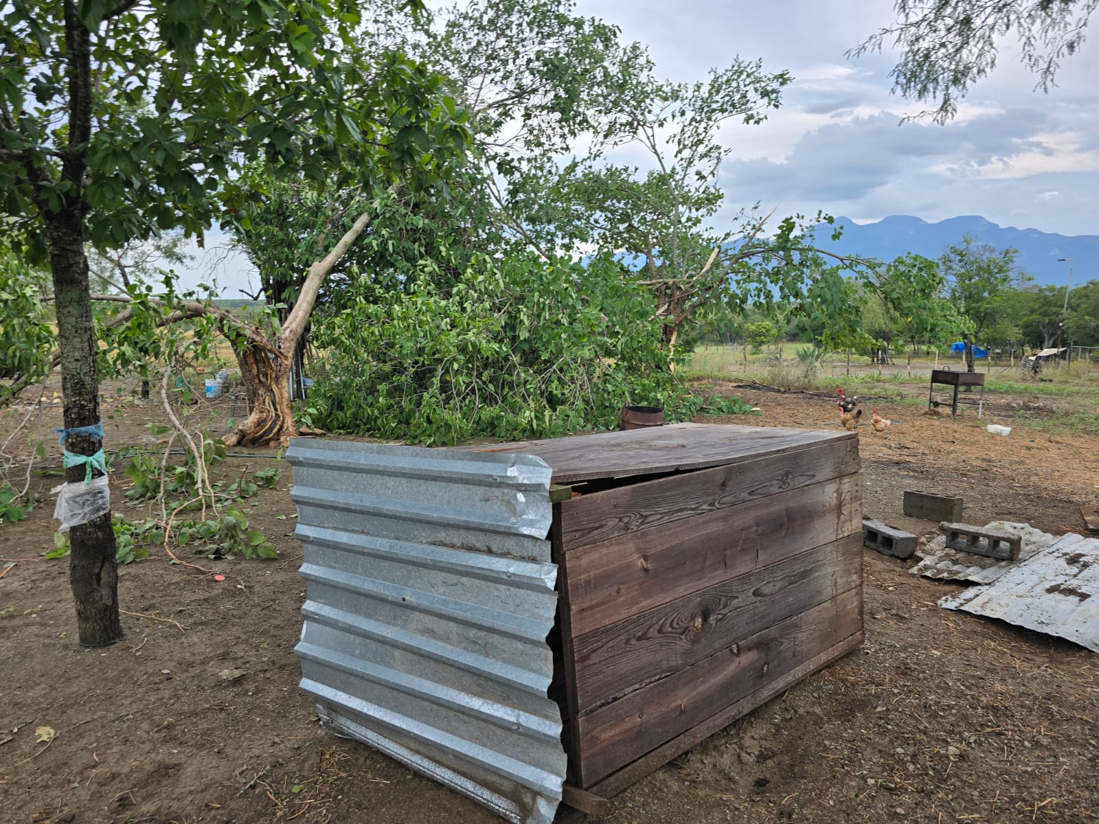 En otros puntos de Montemorelos realizaron procedimientos para retirar árboles caídos y revisar viviendas que los techos fueron colapsados.