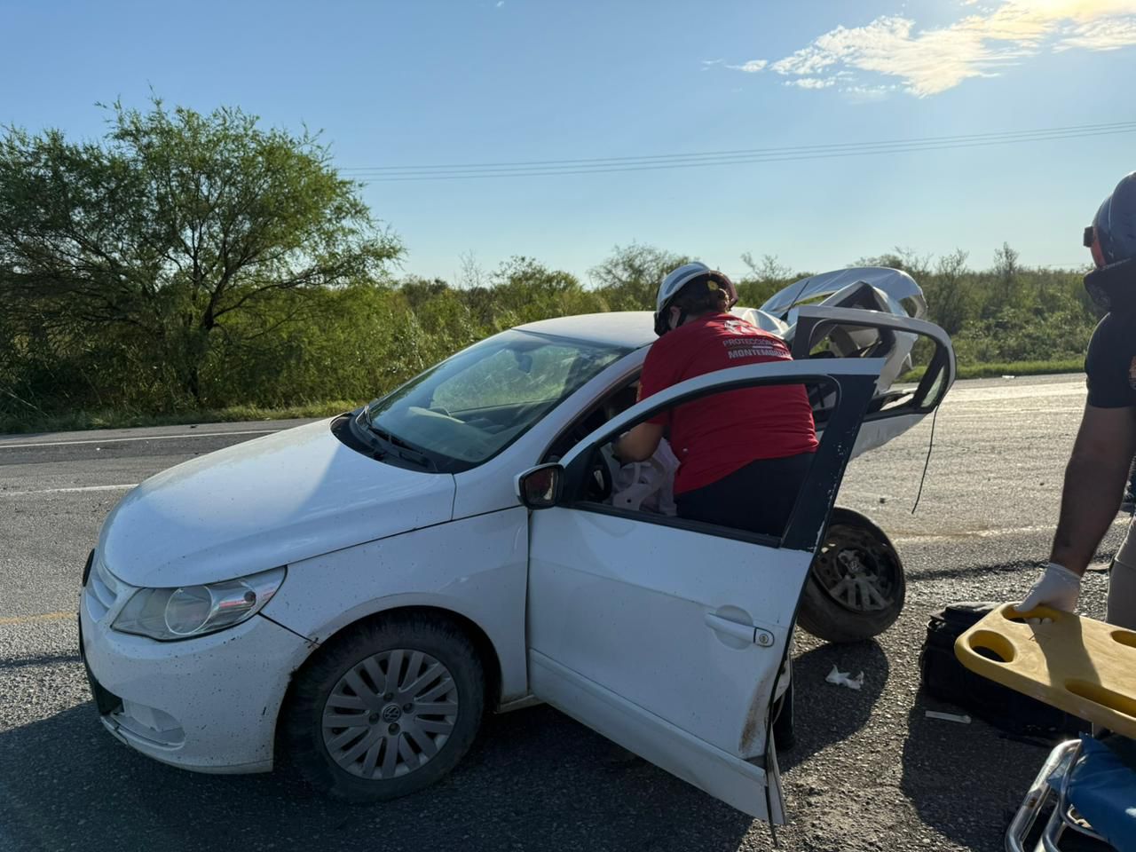 Uno de los vehículos participantes se trataba de un auto Tiida con placas de circulación STT5054 del Estado de Nuevo León donde viajaba una familia, quiénes fueron revisadas por los cuerpos de emergencia CRUM y Cruz Roja coordinados con protección civil.