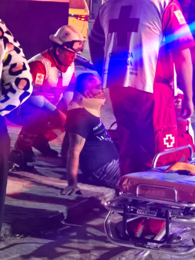 Paramédicos de la Cruz Roja brindaron la atención al motociclista lesionado y lo trasladaron al hospital general.