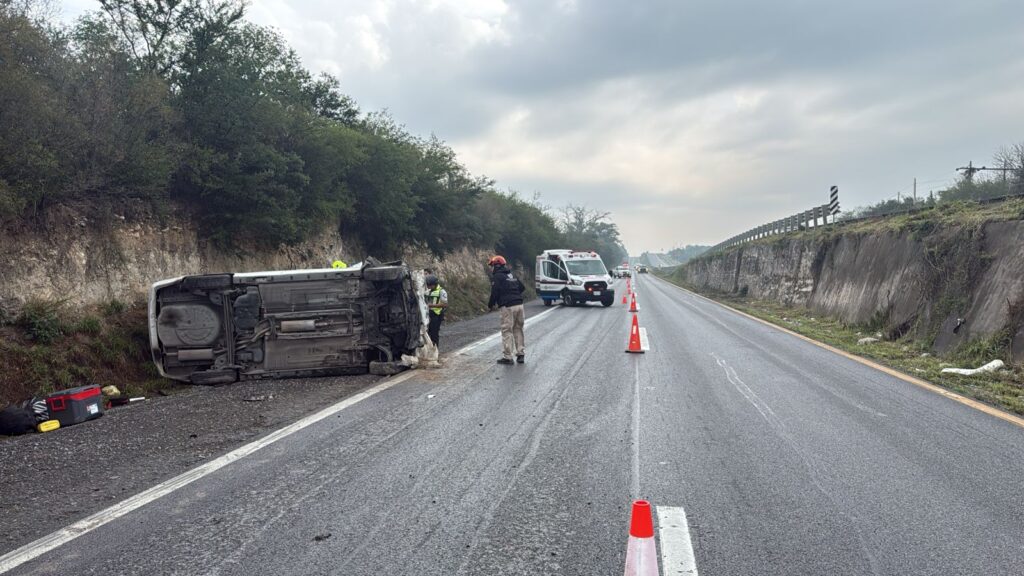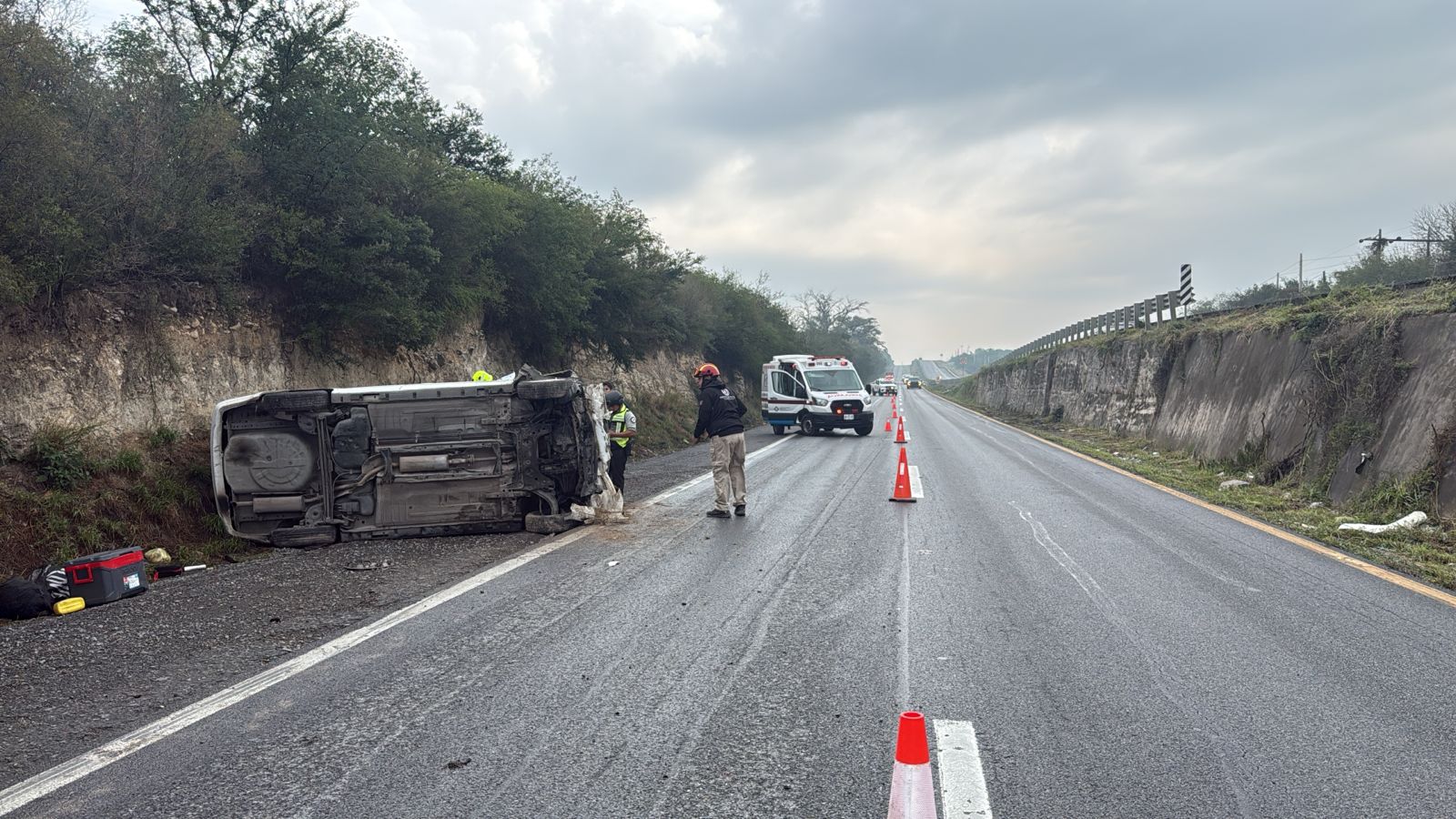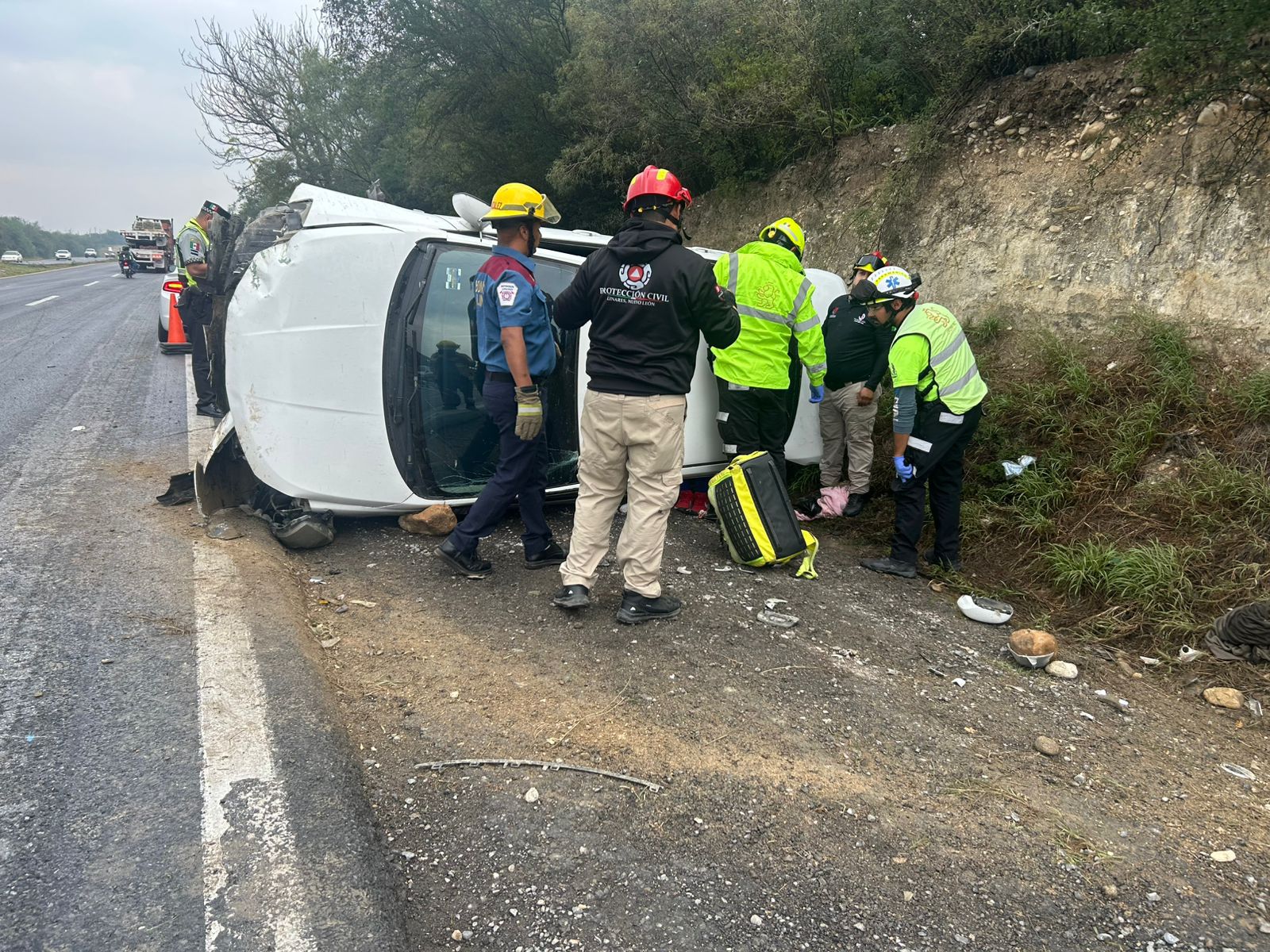 Un accidente vial tipo volcadora se registró en la carretera nacional en Montemorelos, reportando heridos.