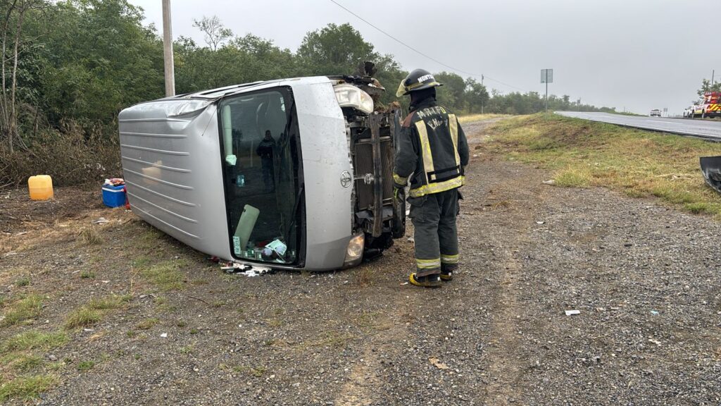 El vehículo circulaba de Monterrey en dirección a Poza Rica Veracruz y al llegar a la curva prolongada sale de la carpeta asfáltica y termina volcado.