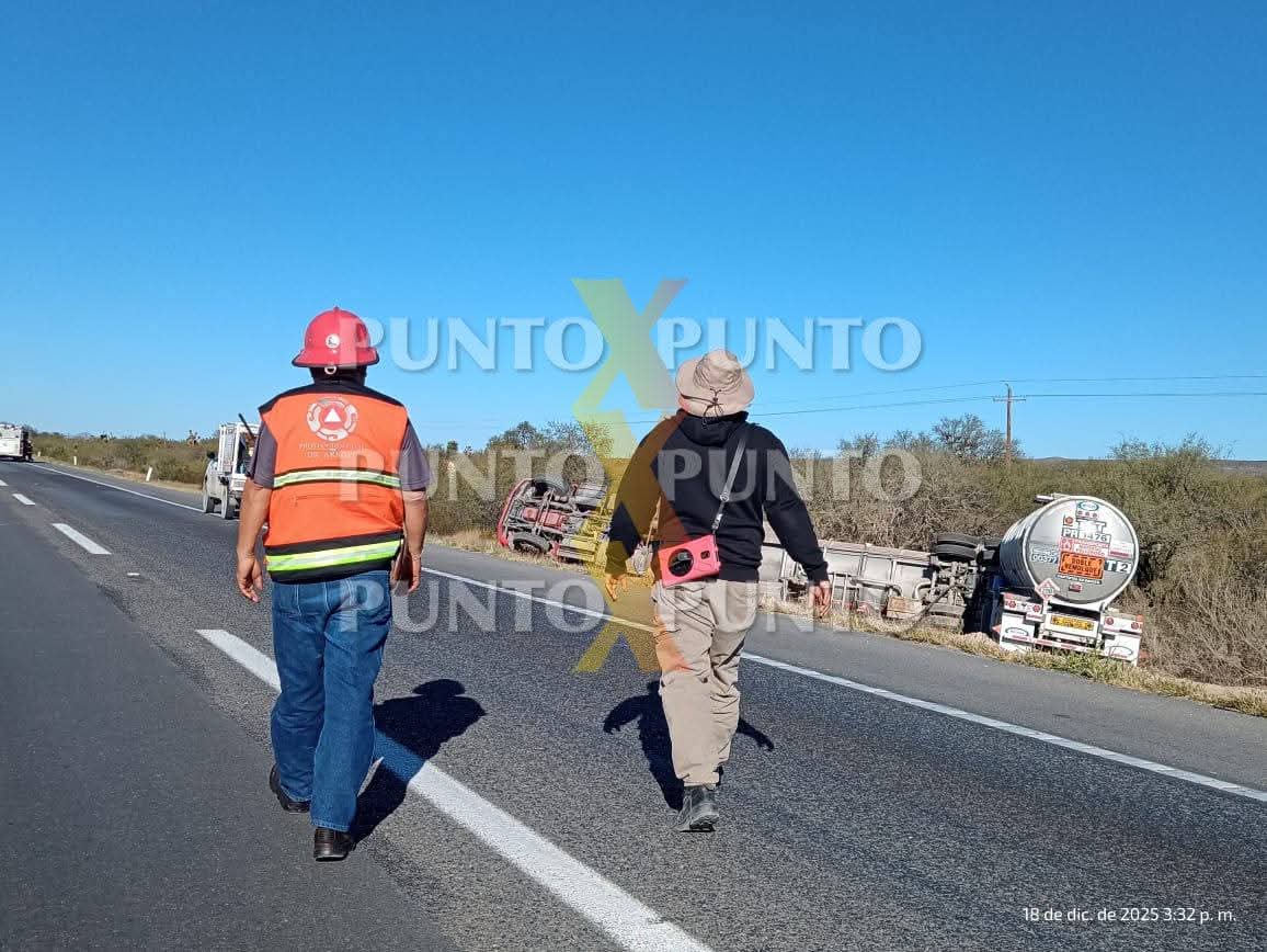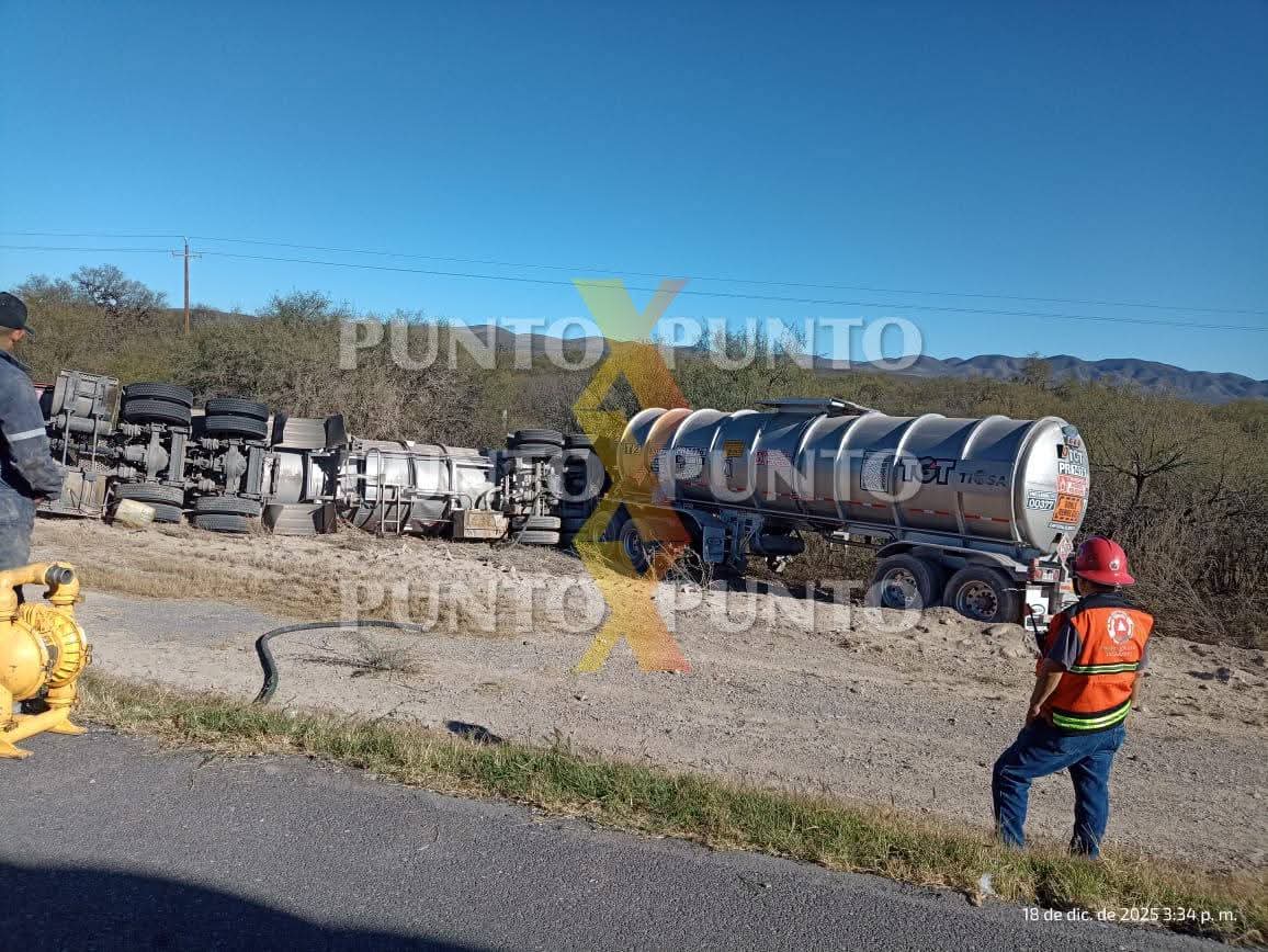 Posteriormente, se continuo a retirar la pipa volcada y limpiar el área, siendo abierta la circulación la madrugada de este viernes. Información: Protección Civil de Dr. Arroyo.