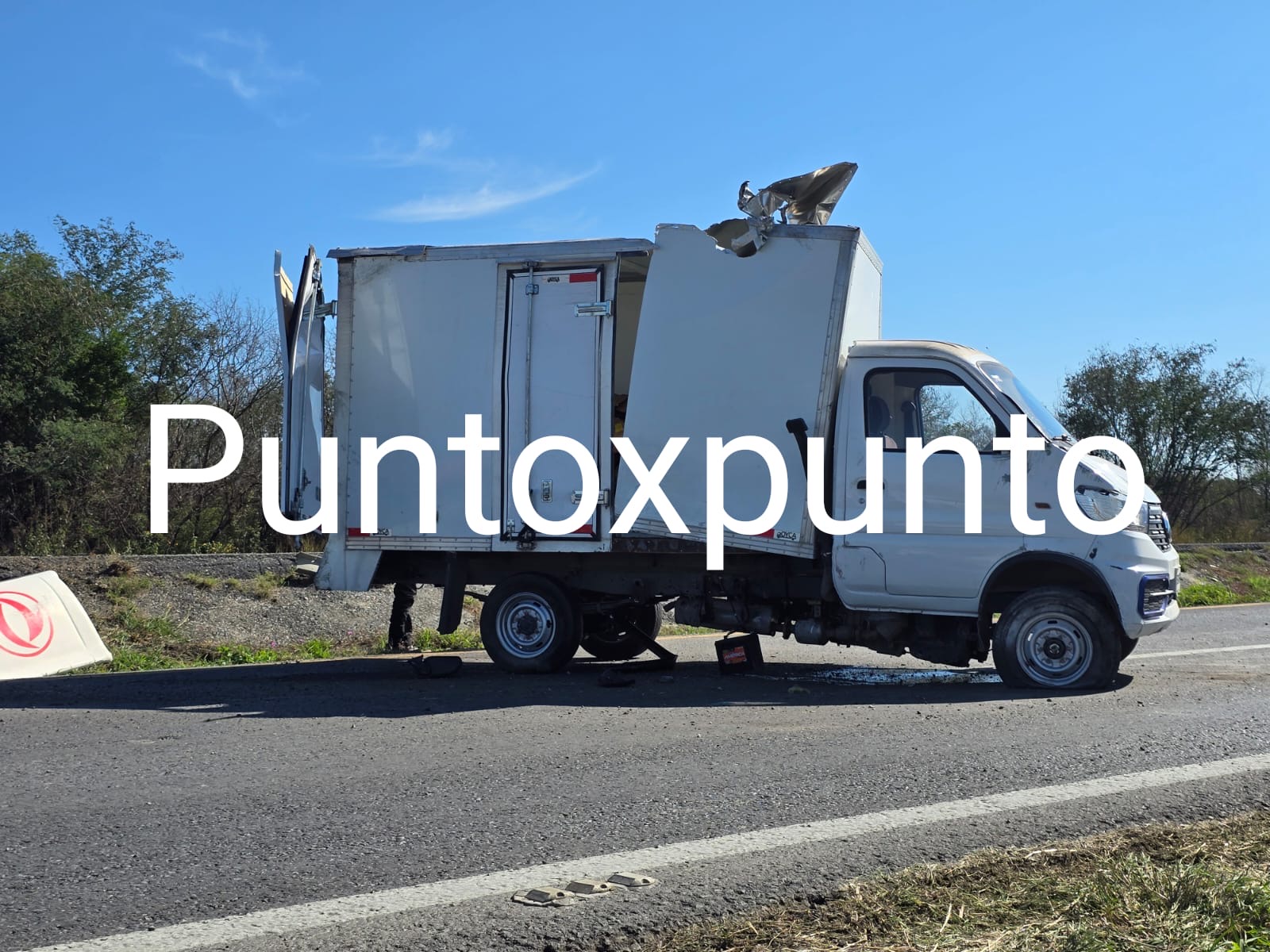 Una camioneta que transportaba paquetería participó en un accidente en carretera nacional resultando el conductor lesionado.