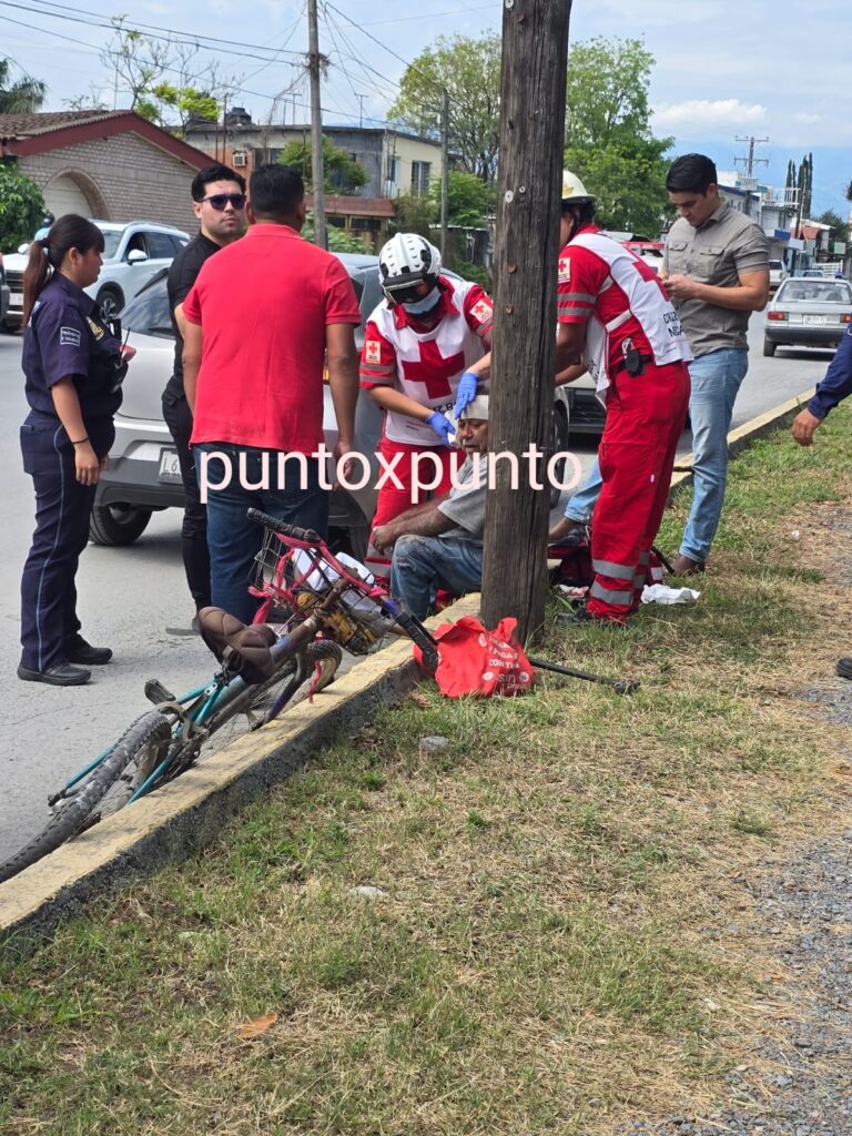 Un ciclista resultó lesionado en un accidente vial registrado en una Avenida en Montemorelos.