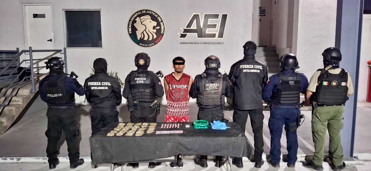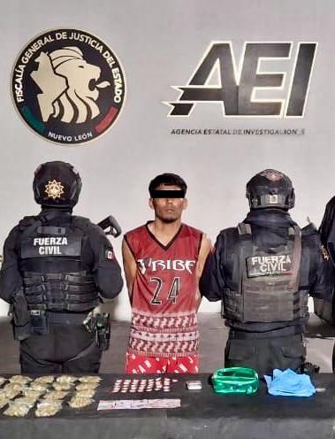 Un joven que presuntamente ofrecía sustancias ilícitas a los habitantes de la colonia Tepeyac, en Linares; fue detenido por el Grupo de Coordinación con diversas dosis de narcóticos.