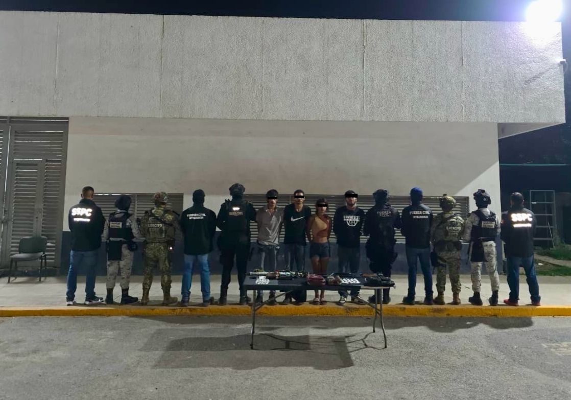 En el lugar, policías de Fuerza Civil desplegaron una intervención táctica que permitió la captura de: Adán N. de 24 años, Hazar N de 25, Alexis N. de 28 y Linda N. de 22 años de edad.